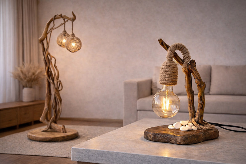 Unsere Handmade Holzlampen harmonieren hervorragend mit beliebten Einrichtungsstilen wie Boho, Landhaus, Skandinavisch, Rustikal, Minimal oder Coastal/Maritim. Besonders schön wirken sie in Kombination mit Naturtextilien, warmen Farben, Rattan, Leinen, Jute und hellen Holztönen – für ein Zuhause, das ruhig, modern und gleichzeitig behaglich wirkt.
