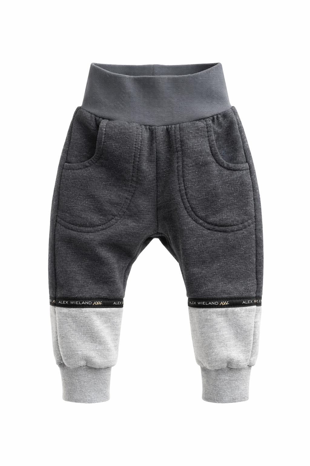 The Rodney baby trousers combine a modern look, high wearing comfort and practical everyday suitability in a lovingly designed baby item. With their stylish grey mottled colour, contrasting light leg cuffs and decorative brand tapes, these trousers are a real eye-catcher for little explorers. At the same time, the wide, elastic waistband ensures a comfortable fit without constricting – ideal for babies who want to move freely, kick, crawl and feel good.